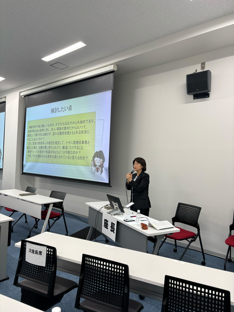 心肺停止から蘇生し、わずかに反応が見られる患者に対し、本人の推定意思や家族の意向を理由に治療の差し控えや撤退ができるのか、現場ではどう考えどう対応するのかについて検討しました。